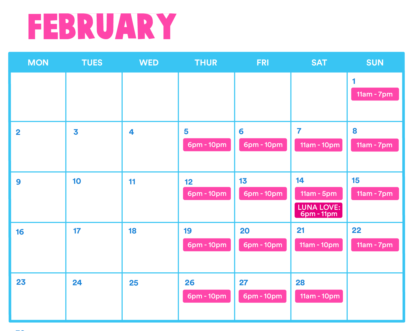 Keep an eye on our opening hours calendar for special event dates and extended opening hours!